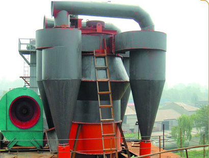 該機由調速傳動部分、主軸轉子部分、分級圈、旋風筒、滴流裝置、殼體、風機等組成,物料由進料口落到撒料盤上,在離心力作用下沿徑向甩出而分散于選粉室內與旋轉上升氣流相遇,與分級圈一起高速旋轉,使氣流中的物料受到較強離心力作用,通過分級圈的細粉經旋風筒收集落入集灰斗,由下部細粉口排出,粗粉落到滴流裝置,從粗粉口排出。