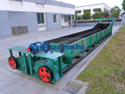該產(chǎn)品適用于建筑工地、砂石廠、水電站混凝土大壩工地、郵電電桿廠需單位砂石及鑄造用“七0”砂、玻璃廠石英砂及油井回填用壓力砂的洗選、分級和脫水。砂石洗選機(jī)按15°傾斜布置,水槽下部由三邊堰板包圍形成沉淀池,螺旋頭部沒入沉淀池內(nèi),螺旋由電動機(jī)經(jīng)減速器驅(qū)動連續(xù)旋轉(zhuǎn),由沉淀池底部多孔板給入清洗水。該設(shè)備兼有清洗、脫水、分級三種功能。